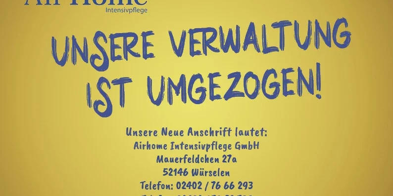 Unsere Verwaltung ist Umgezogen. Ab August 2021 sind wir an der Neuerstellten Intensivpflege in Würselen zu finden. Diese liegt direkt am Rhein-Mass Klinikum. Unsere Neue Anschrift lautet: